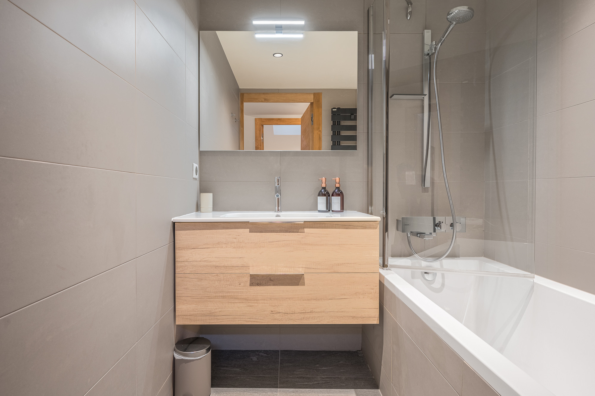 L'appartement propose deux salles de bains - l'une avec douche et l'autre avec baignoire - offrant un espace de détente et de bien-être. Un coin cheminée apportera une atmosphère cosy lors des soirées fraîches en montagne.