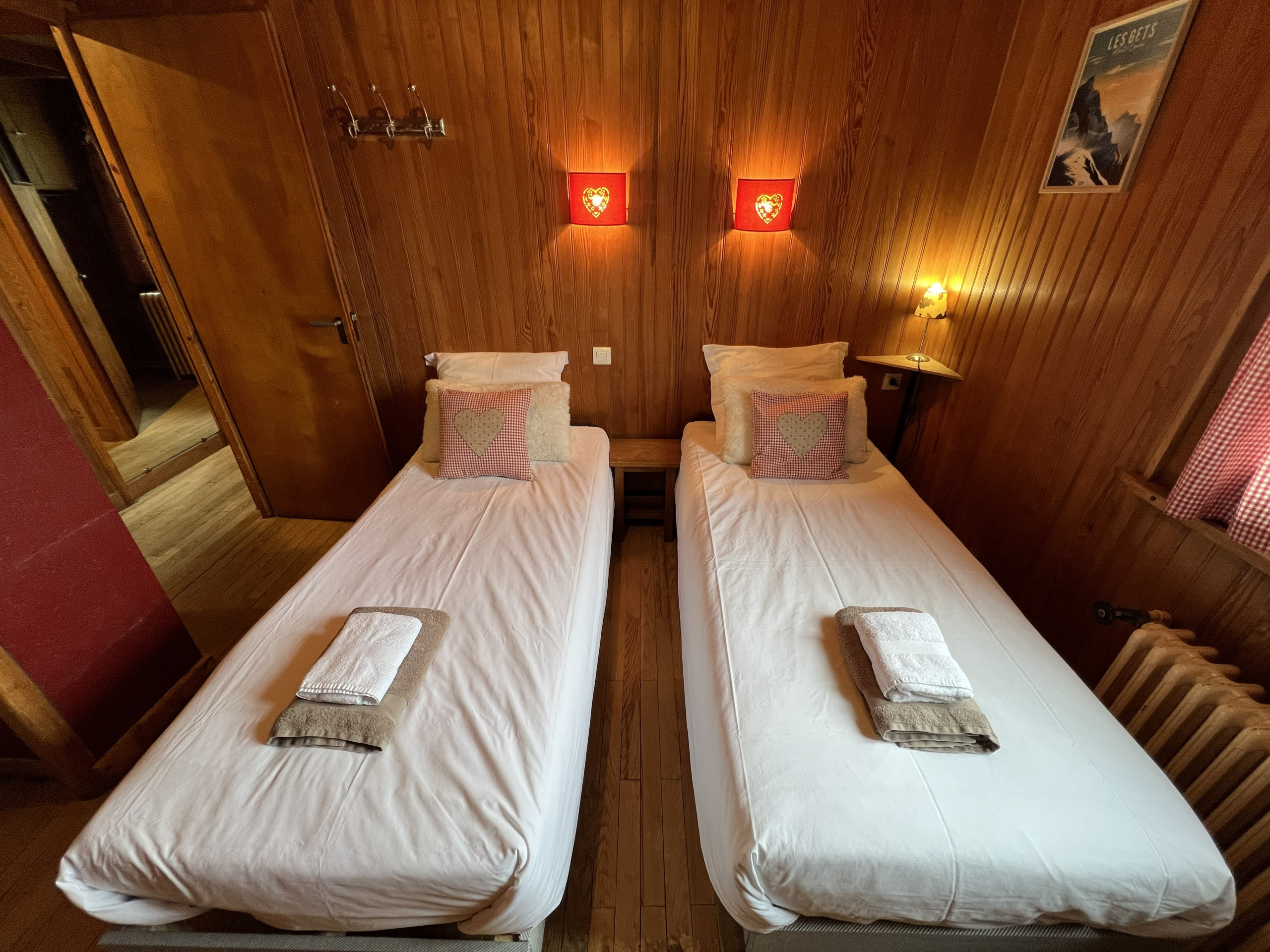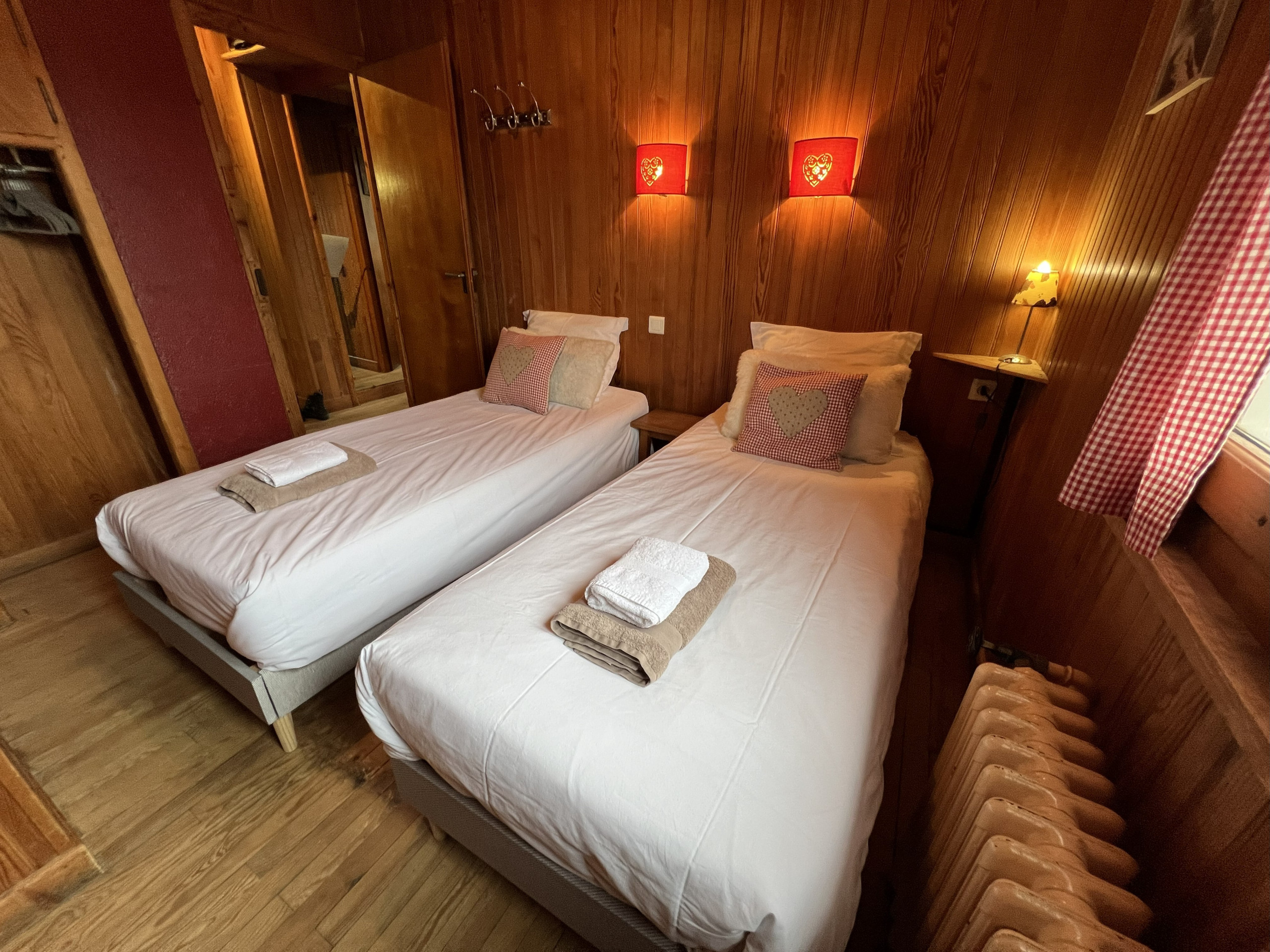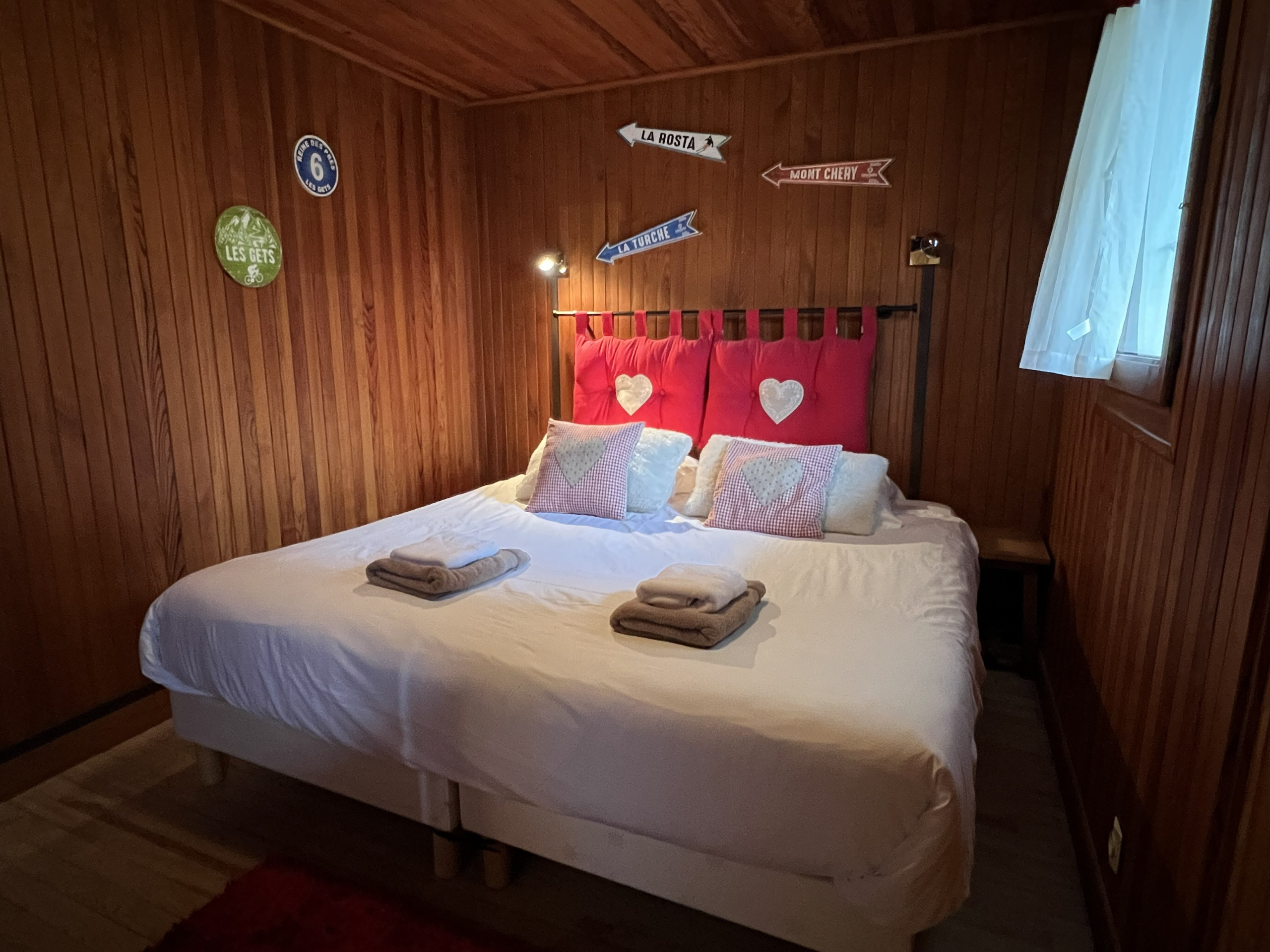Le chalet dispose de 3 chambres bien aménagées, proposant une variété de configurations de couchage : un lit king size dans la chambre parentale, un lit superposé dans une chambre suivante, et deux lits individuels ou lit double danc la 3ème chambre. Cette disposition permet une flexibilité idéale pour les groupes et les familles, garantissant un espace personnel et du confort pour chacun.