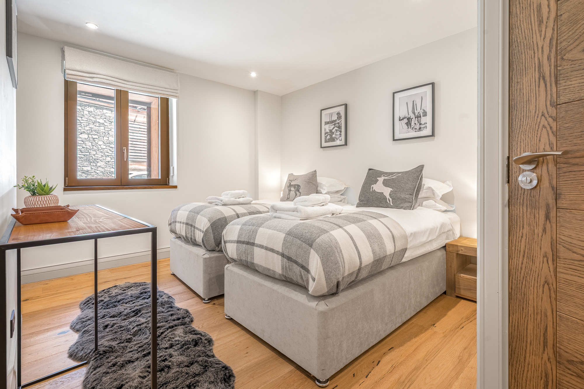 The chalet has 4 elegantly furnished bedrooms, including 2 rooms with double beds and 2 others with single beds that can be separated into twins, ensuring optimal comfort for each guest. The 140 m² interior space is designed for well-being and conviviality, with a fully equipped open-plan kitchen that will allow you to prepare delicious meals after a long day in the mountains!