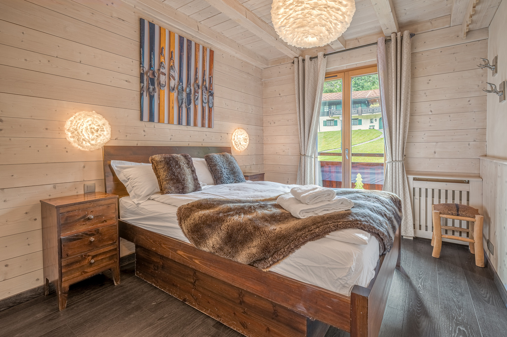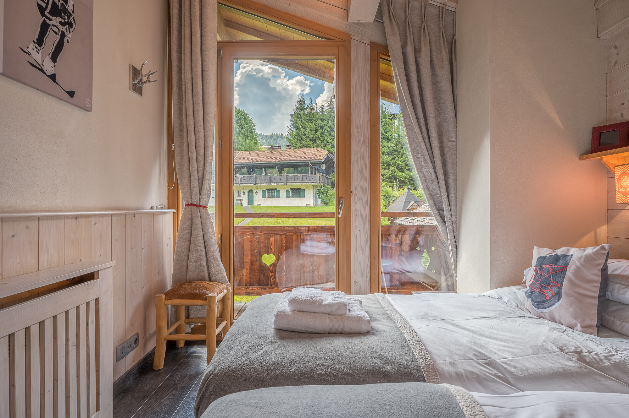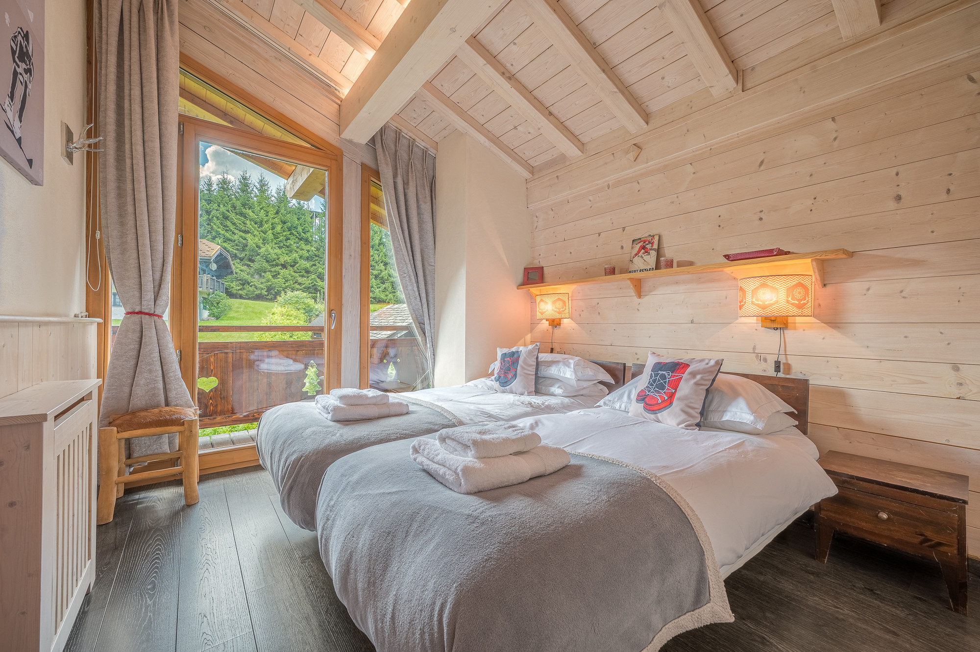 The chalet has 4 elegantly furnished bedrooms, including 2 rooms with double beds and 2 others with single beds that can be separated into twins, ensuring optimal comfort for each guest. The 140 m² interior space is designed for well-being and conviviality, with a fully equipped open-plan kitchen that will allow you to prepare delicious meals after a long day in the mountains!