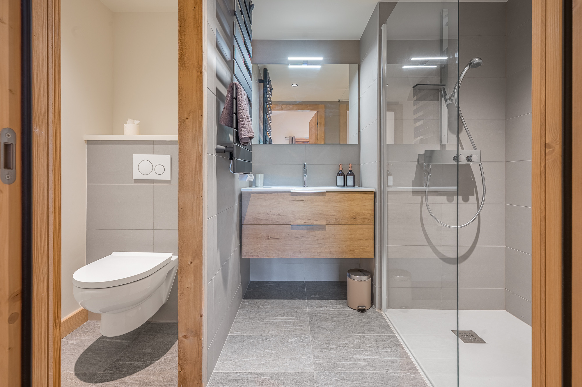 Senna Apartment, a modern and comfortable accommodation located in the heart of Les Gets, perfectly suited to families, couples, and groups of friends.