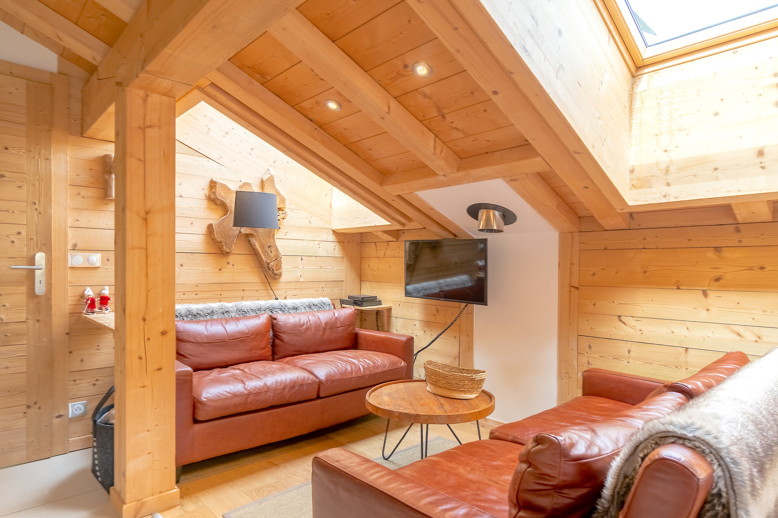 Apartment Alexandra is spread over two levels with the open plan living dining area and main double bedroom with en-suite shower upstairs accompanied by a stunning view of the first slope of the day Perrieres.