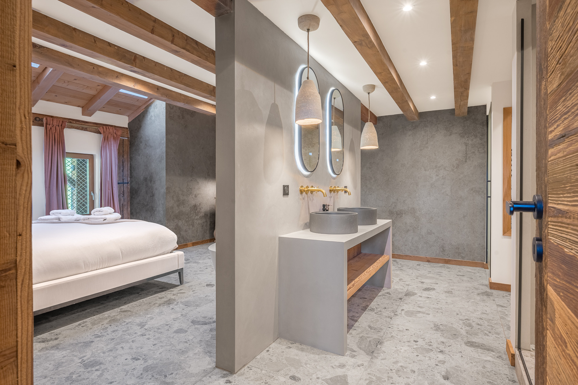 This spacious chalet can accommodate up to 14 people with its 5 comfortable bedrooms. Sleep enthusiasts will be delighted by the variety of sleeping arrangements and high-comfort bedding, consisting of the following: - 1 master bedroom with a 180x200cm bed and its adjoining bathroom with bath and walk-in shower,