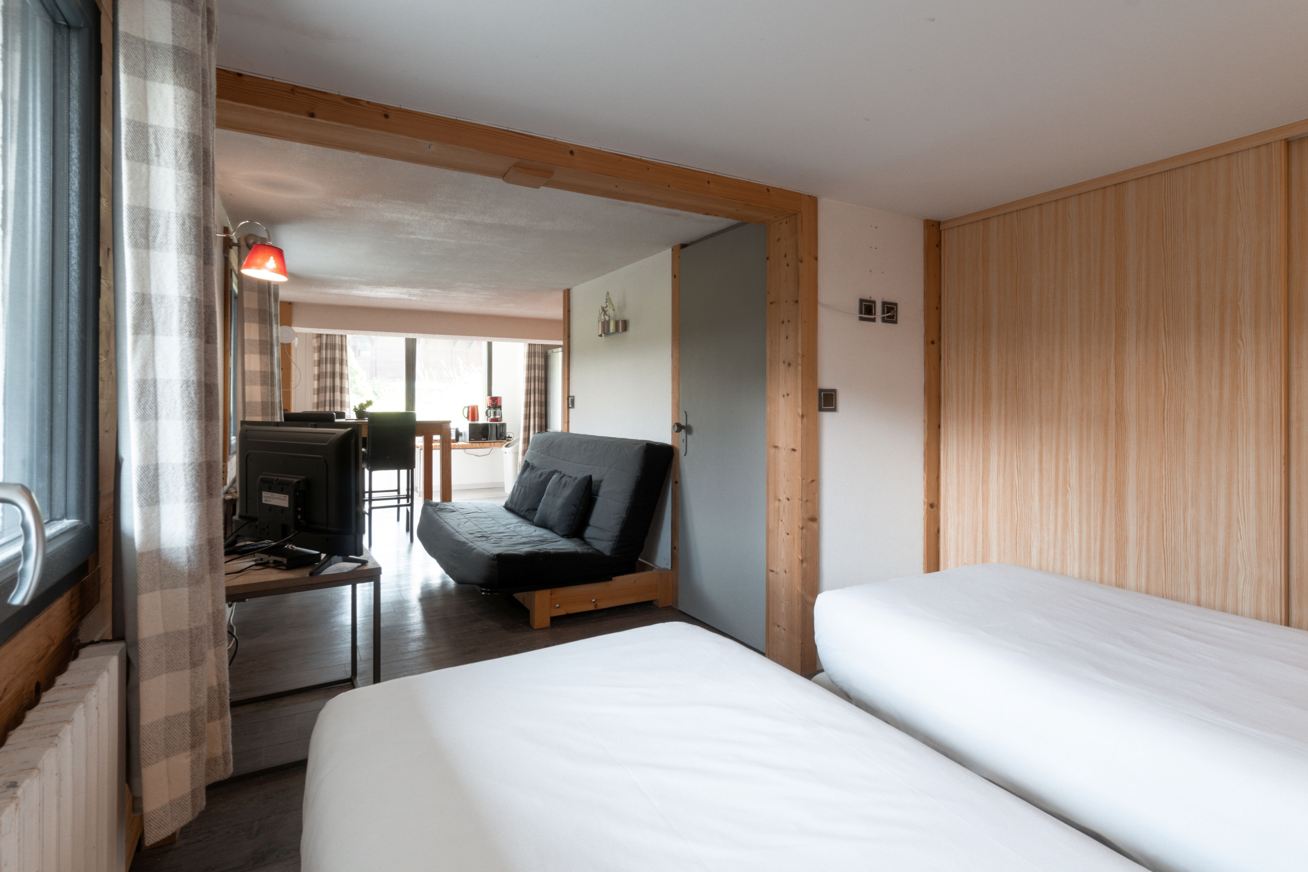 Great Studio with a superb location ski in / ski out on the piste Les Chavannes. It is ideal for a couple with a nice double bed, a sofa area with TV , and a well equipped kitchen. A nice and warm bath welcomes you at the end of the day. In the Summer you can enjoy the free access to the pool and tennis court of the residence and a short walk to the Lac des Ecoles. Small private outdoor space, Parking spot at the residence. There is an option for a cot bed/travel cot. Multipass included.